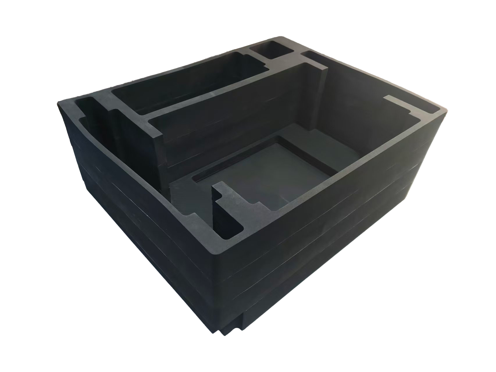 Custom Multi-Layer High-Density Black EVA Foam Insert with Precision Die-Cut Compartments for Protective Tooling and Equipment Packaging